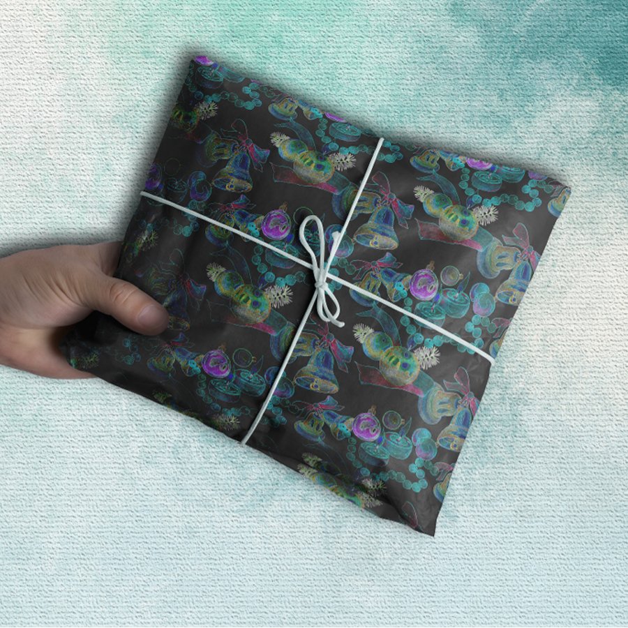 Black Light Neon Glow Xmas Bell and Candle Pattern Wrapping Paper