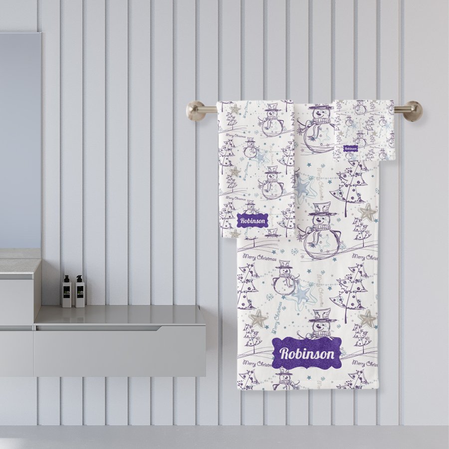 Purple Hand Drawn Jolly Xmas Snowman Bath Towel Set